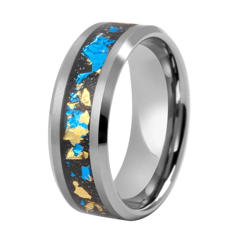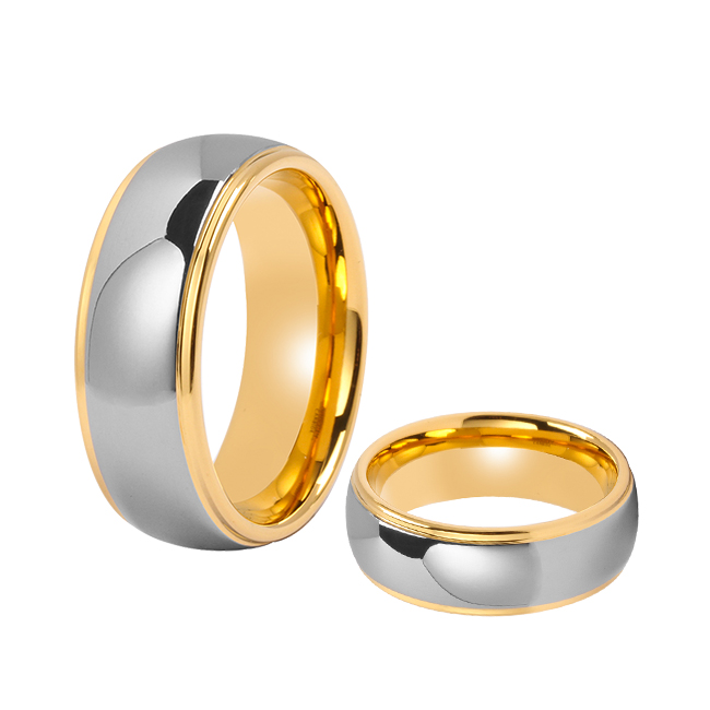 Anillos de acero inoxidable para hombre de dos tonos OEM ODM, anillo personalizable de carburo de tungsteno chapado en oro con incrustaciones de moda para hombre
