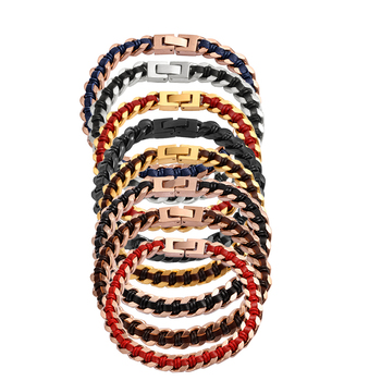 Pulsera de cuero personalizada para hombre, pulseras Vintage de lujo, cadena de cuerda, joyería fina, pulsera de acero inoxidable al por mayor para hombre